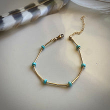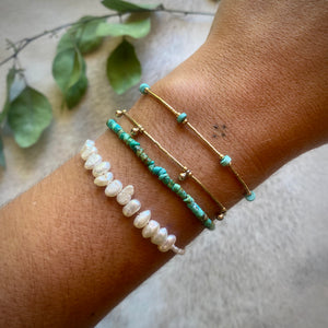 ultra dainty 14k gold fill and turquoise beaded bracelet.
